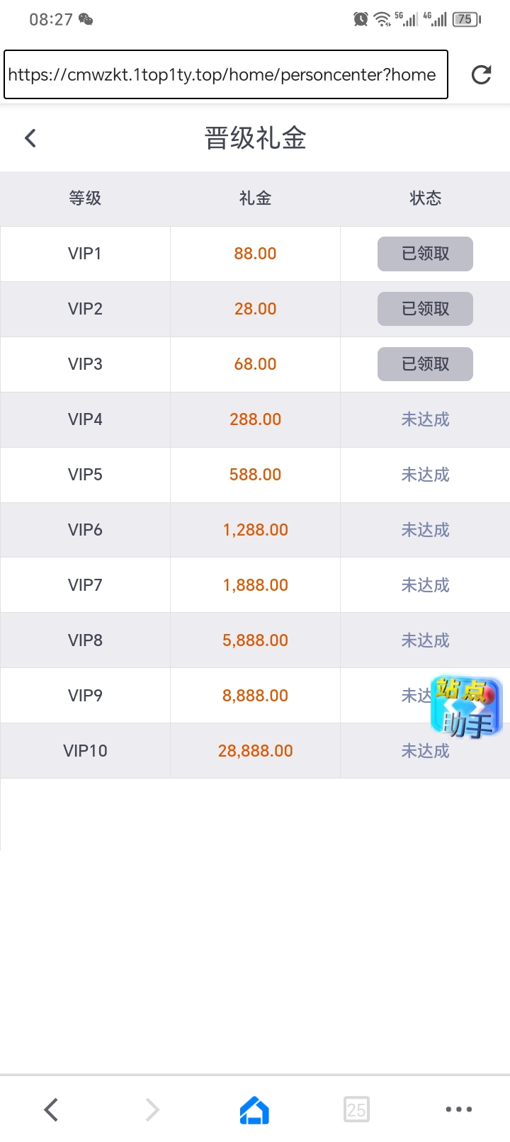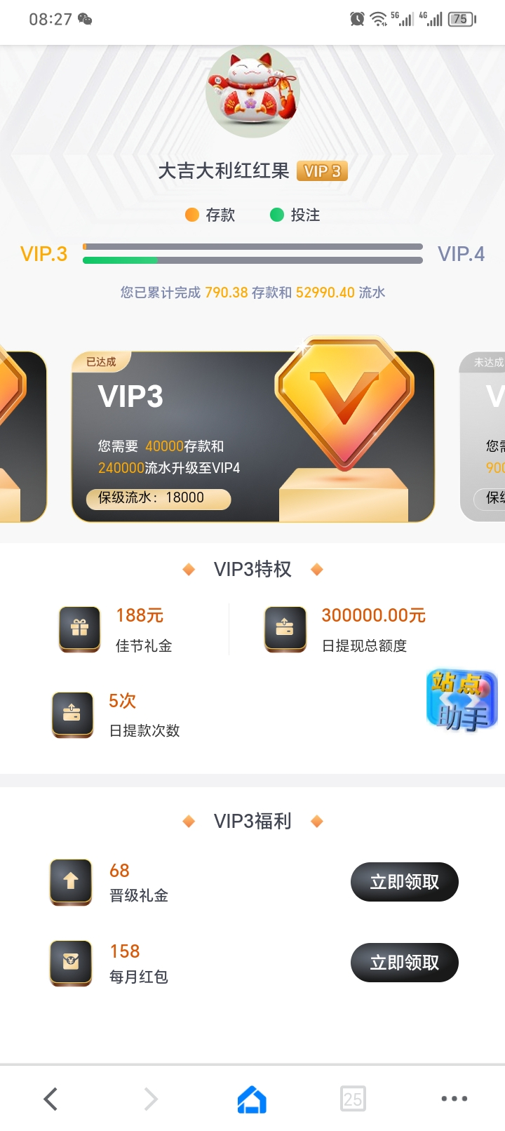 兄弟们我之前vip1  现在改了直接就跳到vip3了可以领取两个晋级彩金 有号的去看看