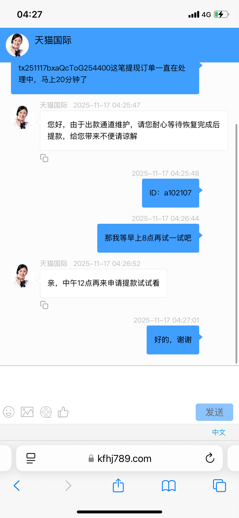 天猫国际1989.vip黑款,提现10551不给出