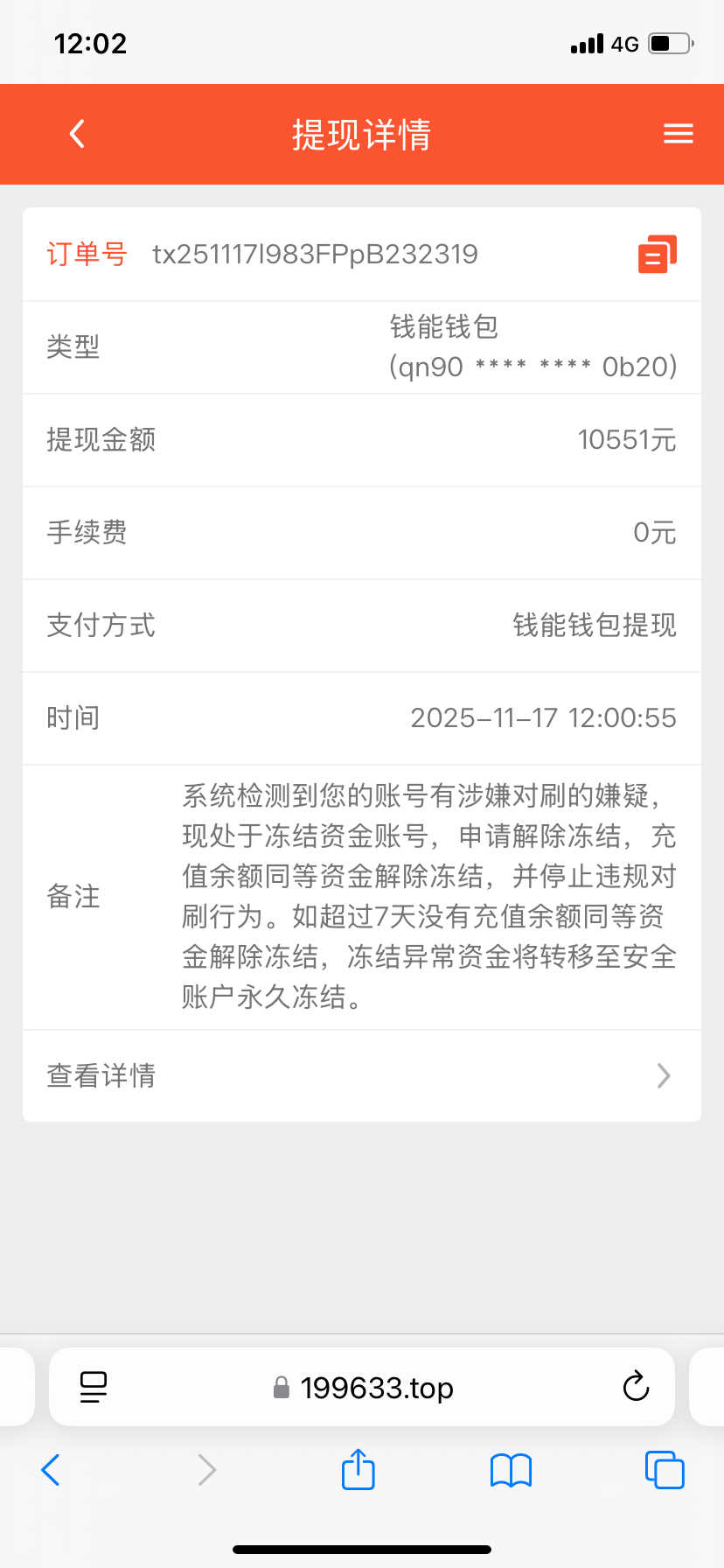 充值500,打到10551不给出款,刚开始的理由是出款通道维护,不给明确时间,后面又说过了中午12点,12点再提,直接说我对刷,需要充值账户同等余额资金验证