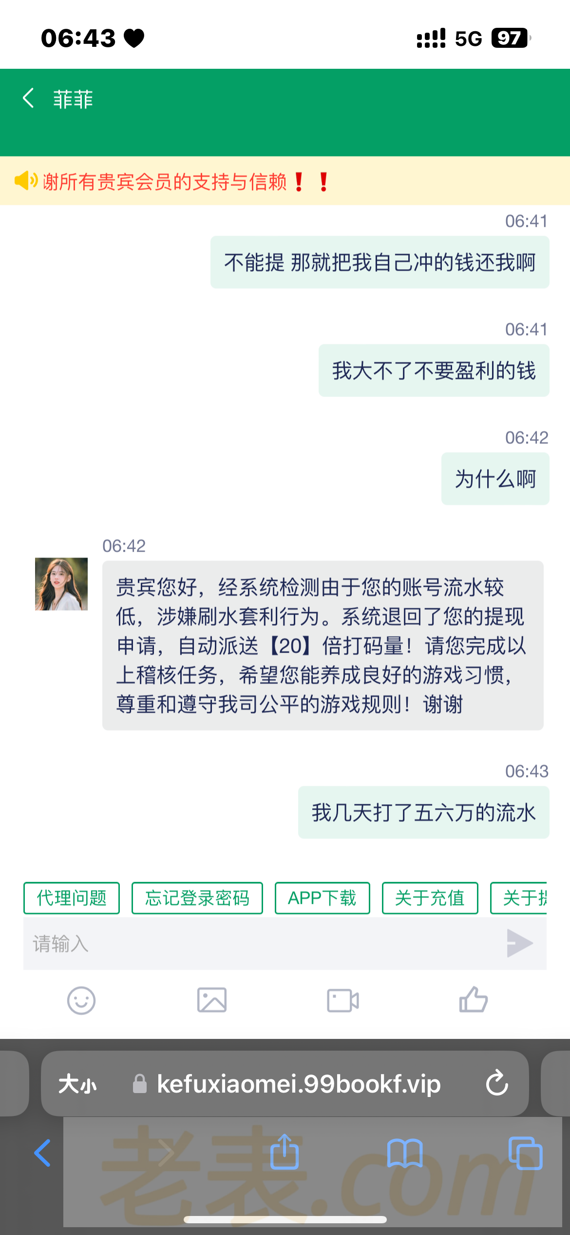黑平台 黑我九千 不停的让我说充钱认证 第一次冲了五百认证最后提了四百 昨天让我充一千认证 罚三万流水 最后打完了 打到了九千八 提现还是被退回 说让今早六点半后提现 刚去提现 说我流水低有套利行为 再给我罚了十七万的流水 不管怎样都是不给提