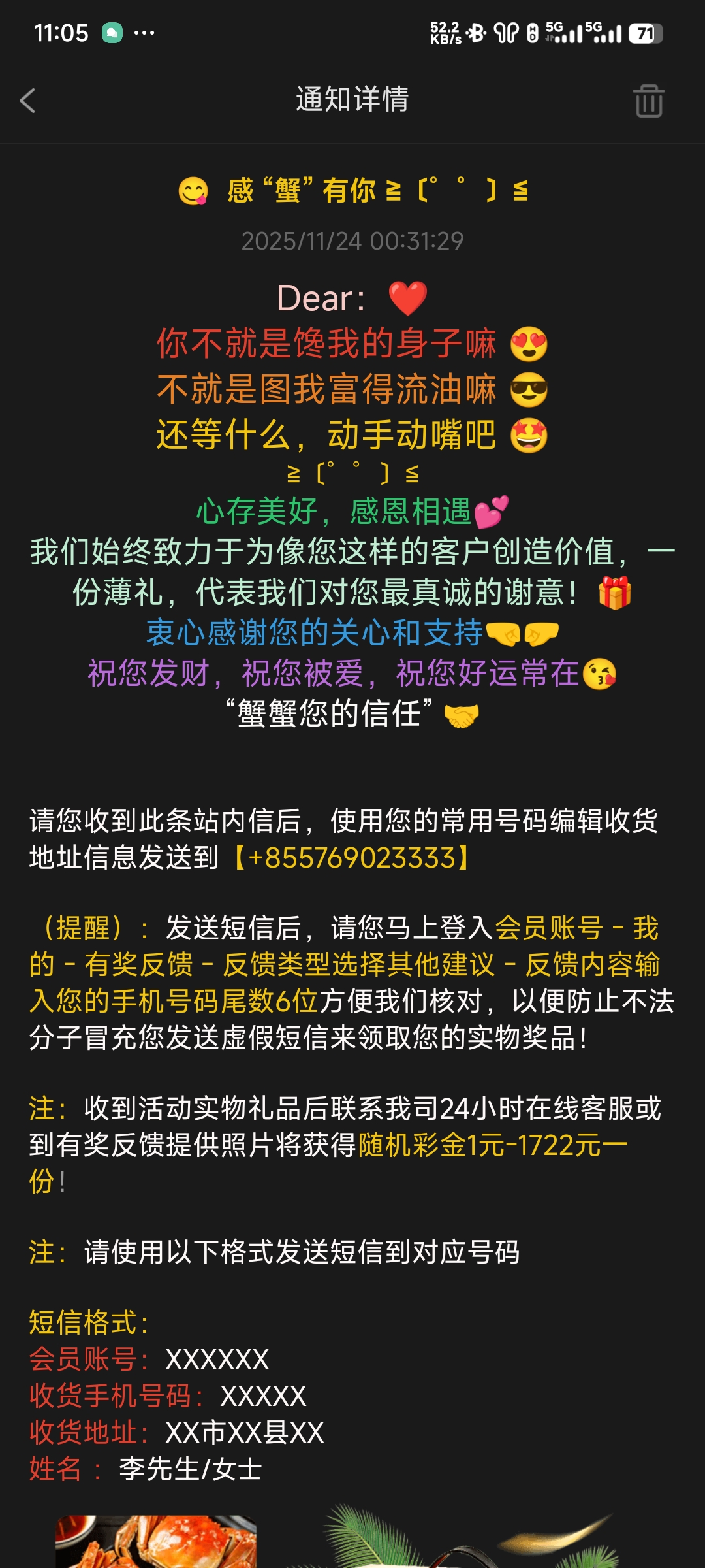 玩过的看站内信,送大闸蟹,昨天在722领了22特邀彩金,打到180挂了,有点上头,刷了一下论坛发现,这个台不黑,就充了500,打上1400,提现也到了,今天上去领彩金,发现站内信送大闸蟹,之前充值玩过的,可以上去看看,狗庄的大闸蟹,不吃白不吃