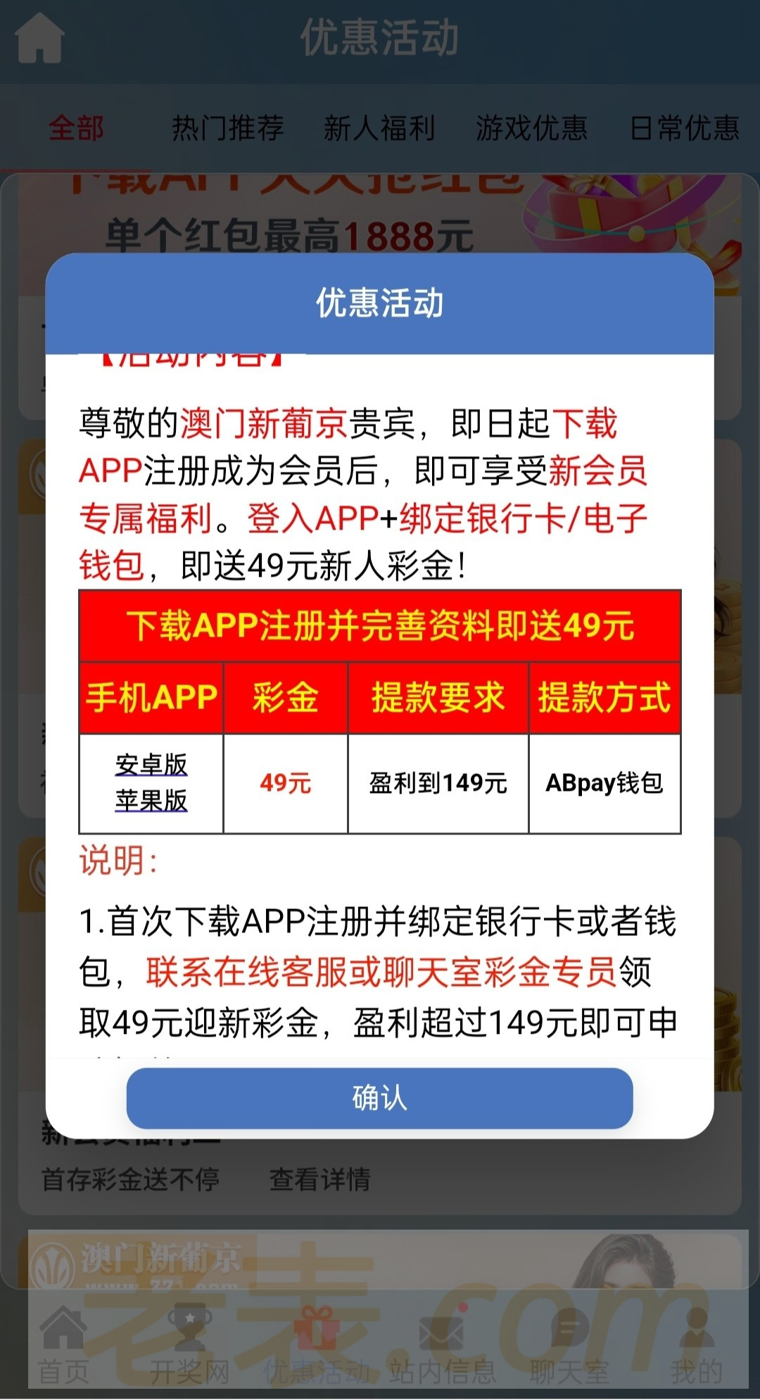新用户注册绑卡,完善信息。联系在线客服申请49彩金。