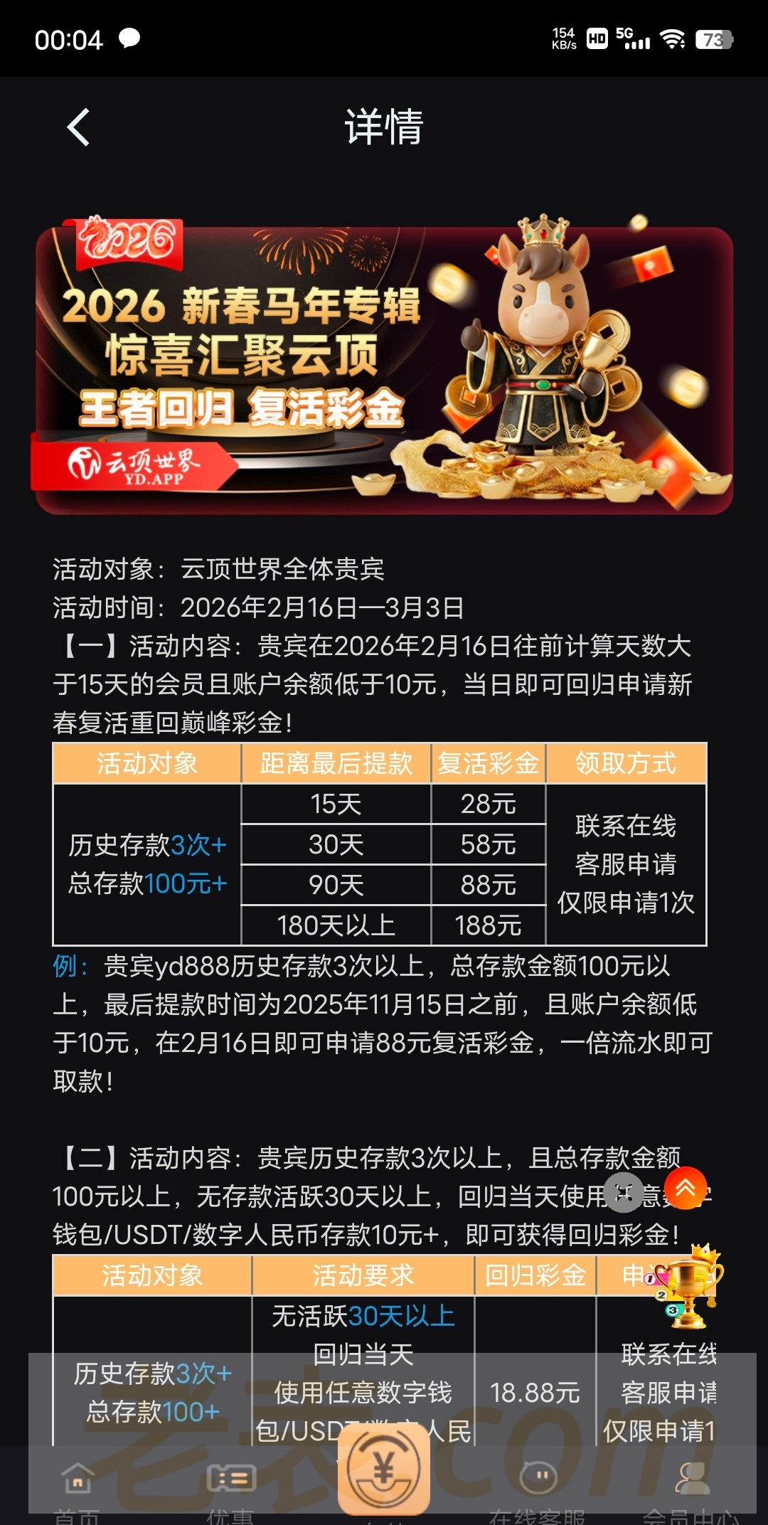 云顶世界回归180天未登录可以领188,我领了58没打出来 勿充值白嫖即可链接YD.APP
