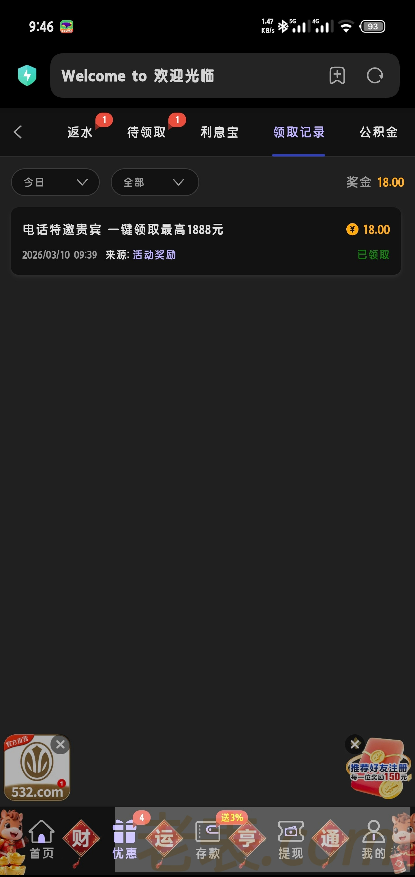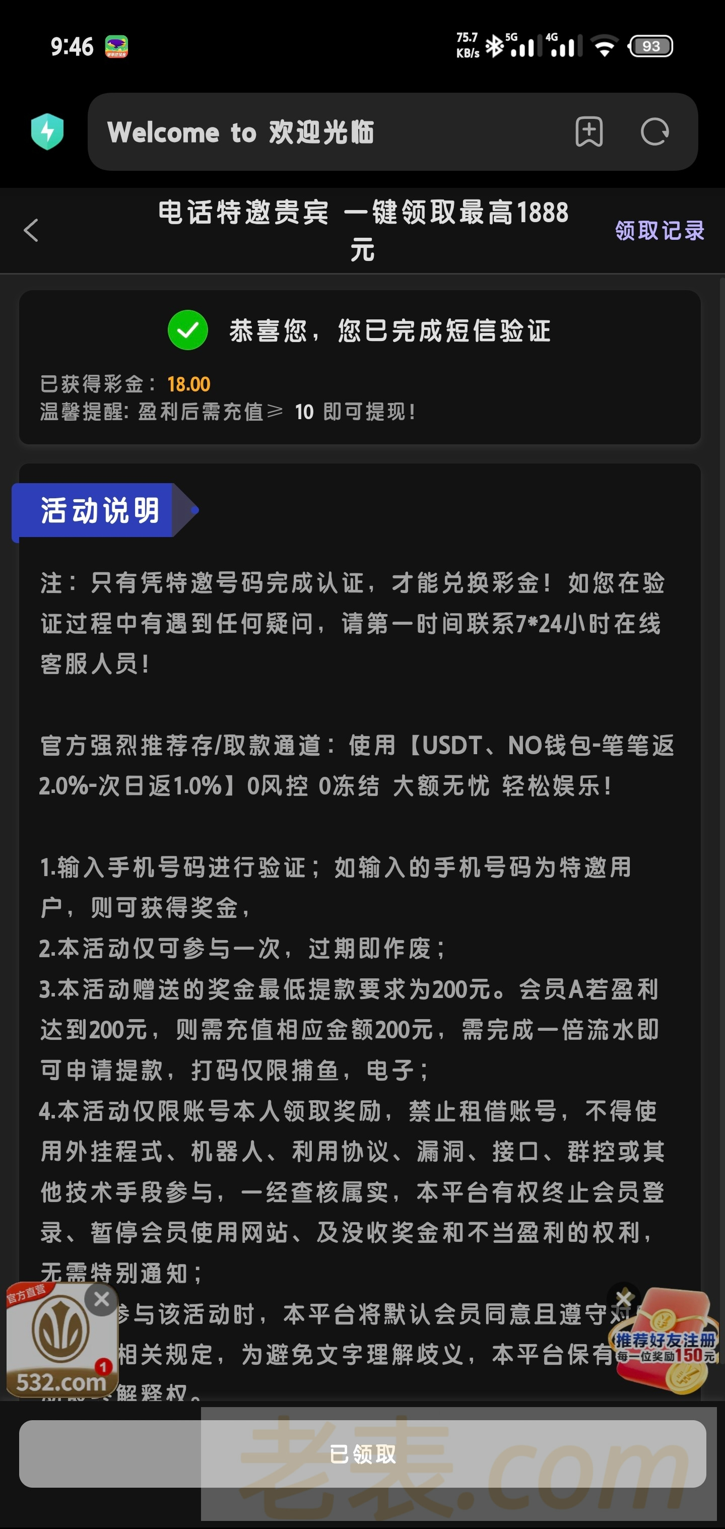 盈利后要充10,我几个手机号以前领取过的,现在又可以重新领取了,以前领过的老哥都去试试,这台子以前领特邀还挺有格局的,白嫖几百