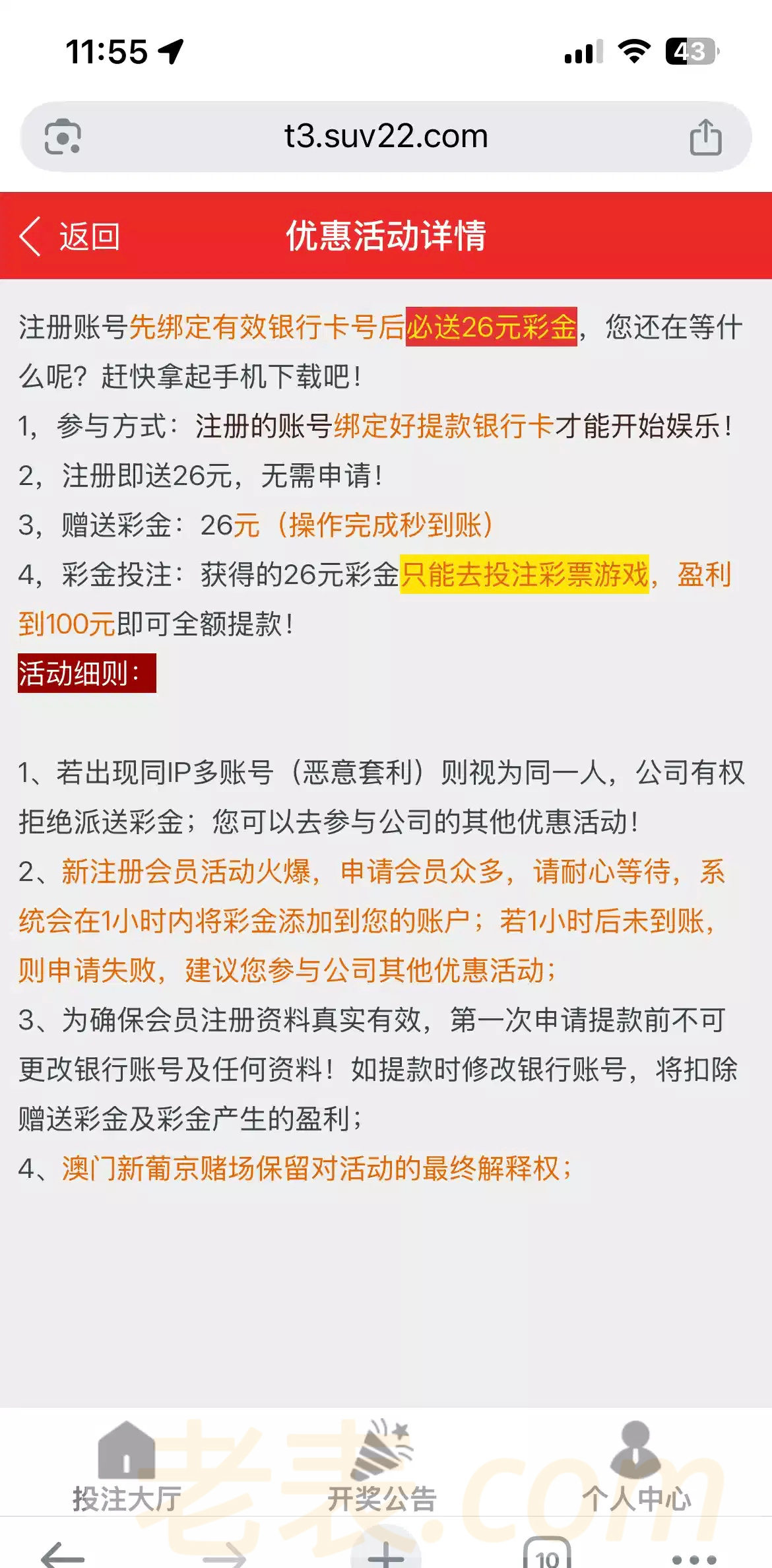 注册绑定银行卡秒送26彩金只能彩票一百提款