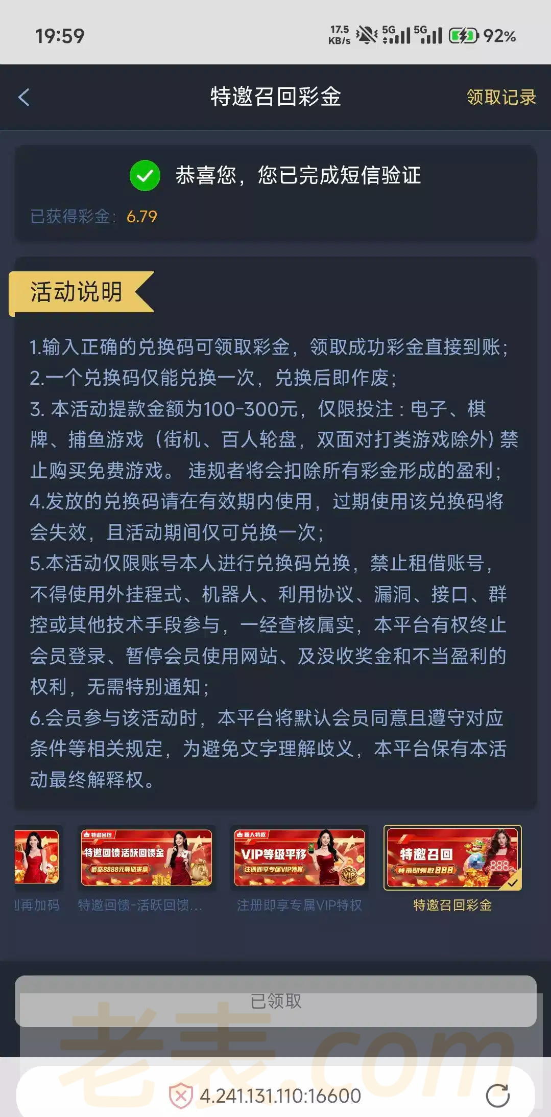 领取到了没有打出来各位漏接电话可以去碰一下